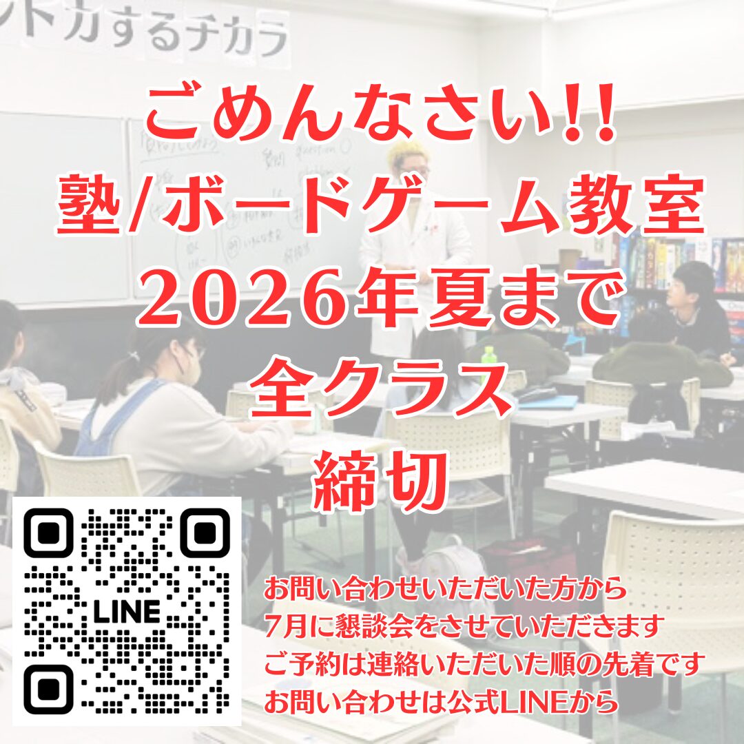 - 塾/ボードゲーム教室も塾長(ボドゲ先生)が直接指導